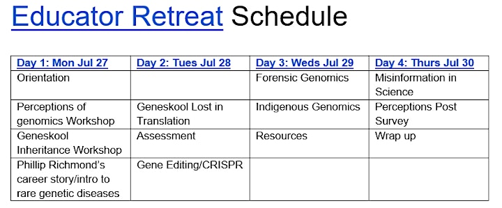 - Engage in meaningful discussion and dialogue over how best to advance genomic literacy with grade 9-12 students